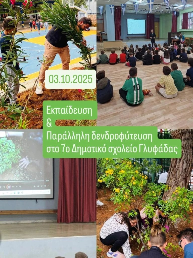 Δενδροφύτευση και παράλληλη εκπαίδευση των μαθητών του 7ου Δημοτικού σχολείου Γλυφάδας, με τη συνδιοργάνωση της Trees4Greece και του Δήμου Γλυφάδας.